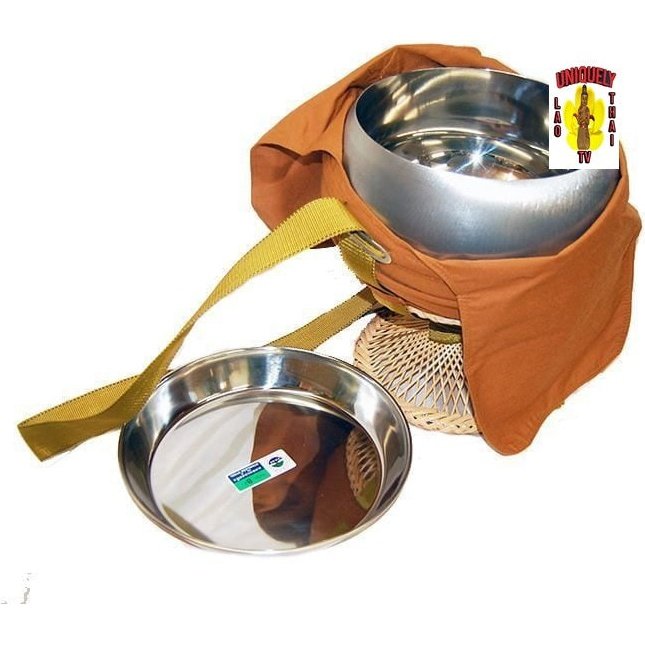 ໂຖປັດສະວະພຣະສົງ 10" x 11" ໂຖປັດສະວະຖືກຂັດສະແຕນເລດ ໃນຂະນະທີ່ຈານເປັນສະແຕນເລດຂັດ.