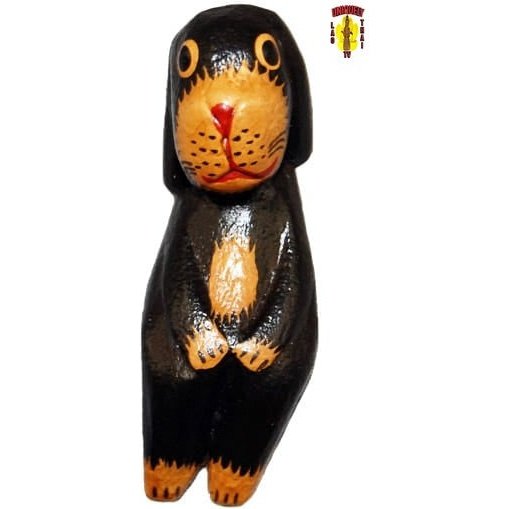 Add a touch of timeless charm to your decor with the Black Dog Sitting Down, a beautifully handcrafted 4-inch wooden sculpture from Indonesia. Carved from solid wood and finished with a sleek black sheen, this piece captures a dog in a serene seated pose, showcasing the natural grain beneath its polished surface. Featured by Naree on Uniquely Thai Lao TV (watch here), this sculpture reflects the artistry and cultural richness of Indonesian craftsmanship, making it a standout addition for collectors and decor lovers alike.