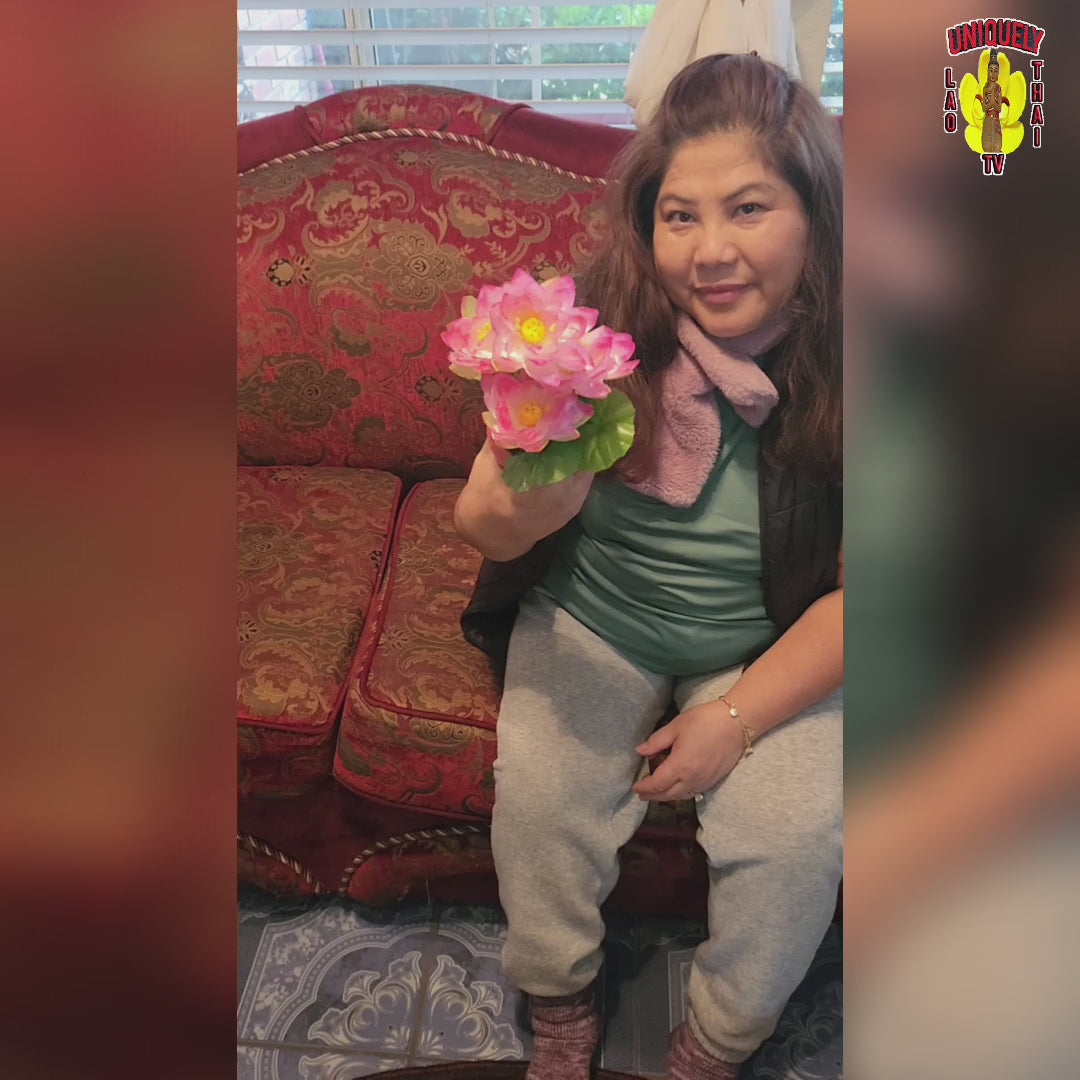 These decorations are adorned with shimmering accents, evoking the serene beauty of a lotus blooming above muddy waters—a powerful metaphor for spiritual awakening in Thai and Lao culture. Whether placed on a home altar, temple shrine, or paired with offerings like incense and candles, they create a harmonious and sacred ambiance. To explore their cultural significance, tune into Uniquely Thai Lao TV on Roku, where Naree shares the stories behind these exquisite creations and their role in Thai Buddhist practices. Watch now.