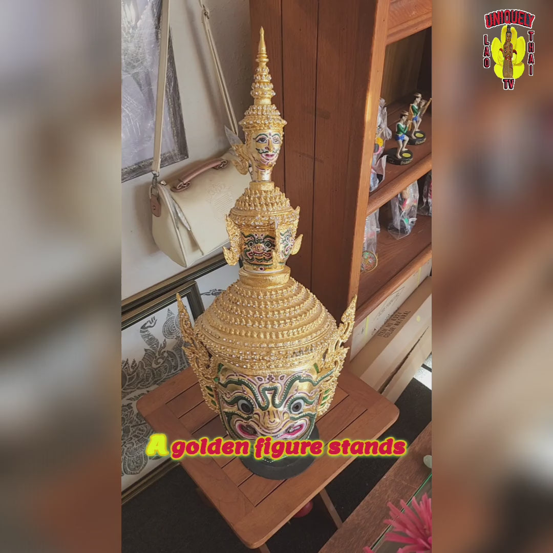Why This Piece Will Inspire You Every Day • Celebrates Hanuman – Thailand’s most adored epic hero of strength and devotion • Rare fusion with Manohra’s heavenly headdress from southern Thai legend • Richly detailed cast resin enhanced with glass and colorful gem-like stones • Glossy finish for eye-catching brilliance indoors or in covered outdoor spaces • Ideal for Thai culture lovers, Khon dance enthusiasts, or spiritual home displays