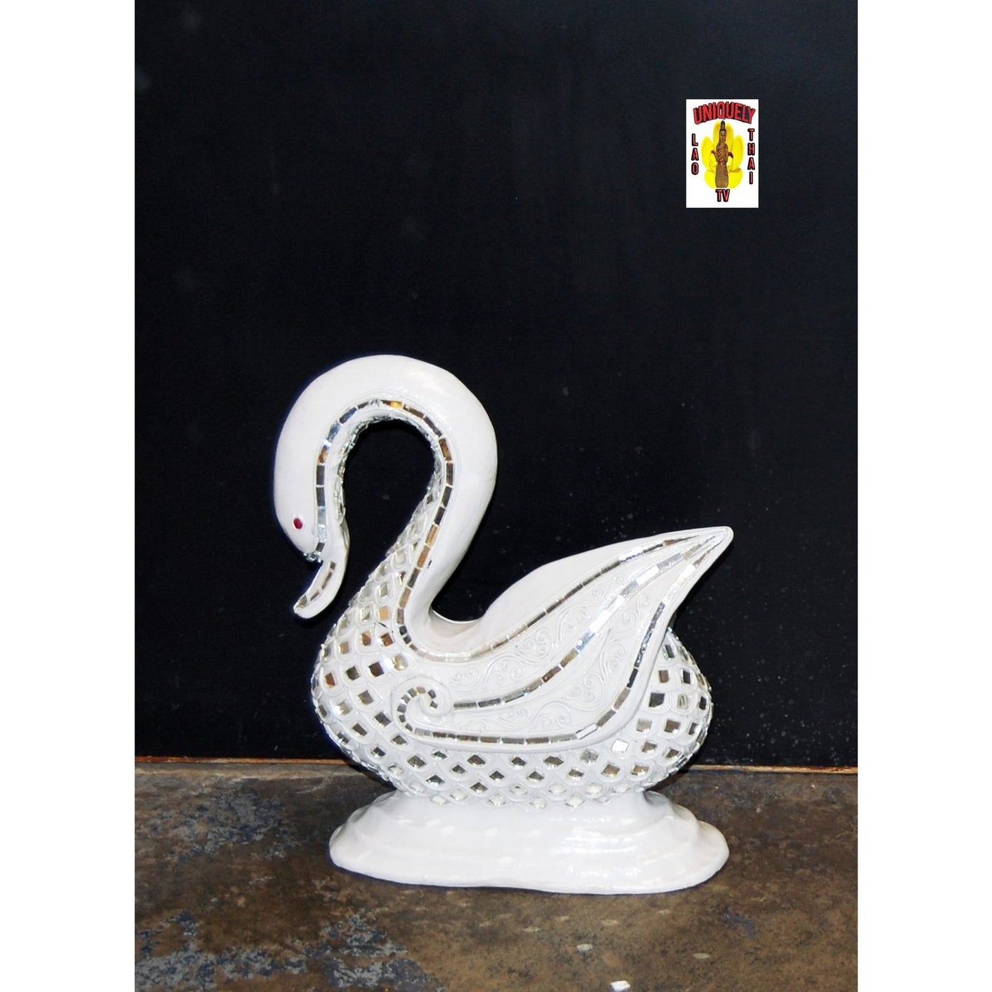 หงส์ไม้แกะสลักทาสีขาวประดับกระจกสี